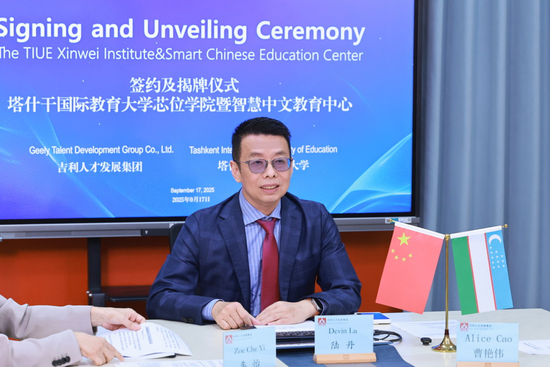 2025年9月17日,吉利人才發(fā)展集團(tuán)攜手芯位教育與塔什干國(guó)際教育大學(xué)以線上線下融合方式,舉行了“芯位學(xué)院”及“智慧中文教育中心”的揭牌與簽約儀式。這是繼今年6月與烏茲別克斯坦納沃依國(guó)立大學(xué)成功合作后,“芯位學(xué)院”在烏茲別克斯坦的又一次重要布局,它不僅意味著吉利“三個(gè)校園”這一教育新模式在中亞地區(qū)獲得了積極的響應(yīng)與協(xié)同推進(jìn),更體現(xiàn)了雙方在人工智能時(shí)代背景下,對(duì)教育領(lǐng)域無(wú)限發(fā)展?jié)摿Φ纳羁陶J(rèn)同與攜手共進(jìn)的堅(jiān)定決心。