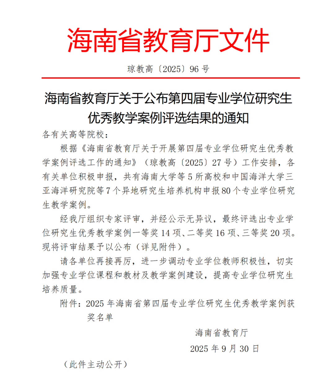 三亞學(xué)院研究生教育教學(xué)成果獲省級(jí)表彰!